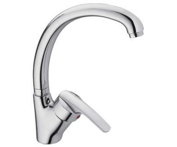 FORMIX Однорычажный смеситель для кухни с поворотным изливом и керамическим картриджем в современном дизайне.