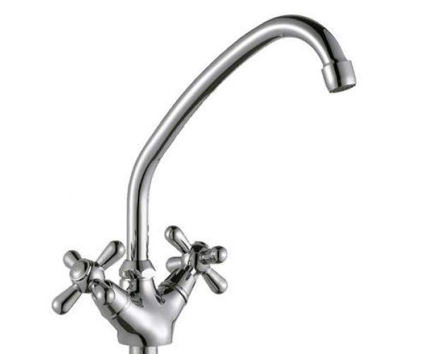 Двухвентильный смеситель для кухни, на одно отверстие, с поворотным изливом, цвет хром