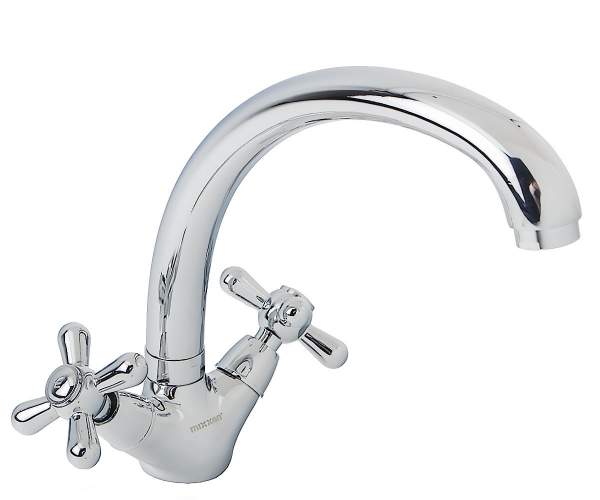 Двухвентильный смеситель для кухни, на одно отверстие, с поворотным изливом, цвет хром