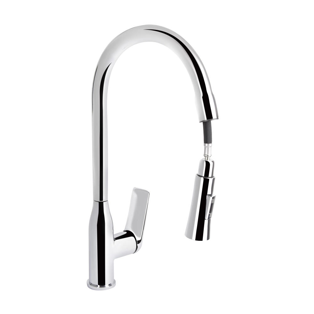Змішувач Qtap Vlasta New QTVLA344CRM45646 для кухні з висувним виливом виконаний з високоякісної латуні та має хромоване глянцеве покриття, яке забезпечує довговічність і стійкість до корозії. Висувний вилив дозволяє легко очищувати посуд і важкодоступні місця, а зручний важіль забезпечує точне керування температурою і напором води.